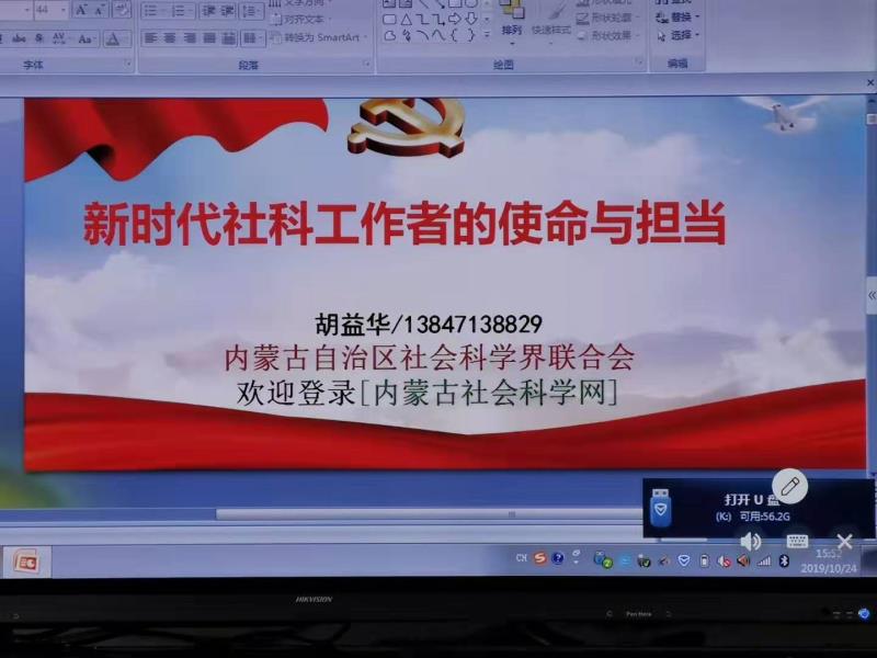 为深入学习贯彻习近平总书记关于“不忘初心、牢记使命”主题教育系列重要指示精神,将主题教育活动推向深入,真正做到学深悟透、融会贯通、真信笃行,2019年10月24日下午,太阳成集团tyc151cc党总支邀请内蒙古自治区社会科学界联合会巡视员胡益华同志在田楼432会议室作了题为“新时代社科工作者的使命与担当”的学术报告。报告会由党总支书记高林广主持,学院全体党员和教师聆听了讲座。