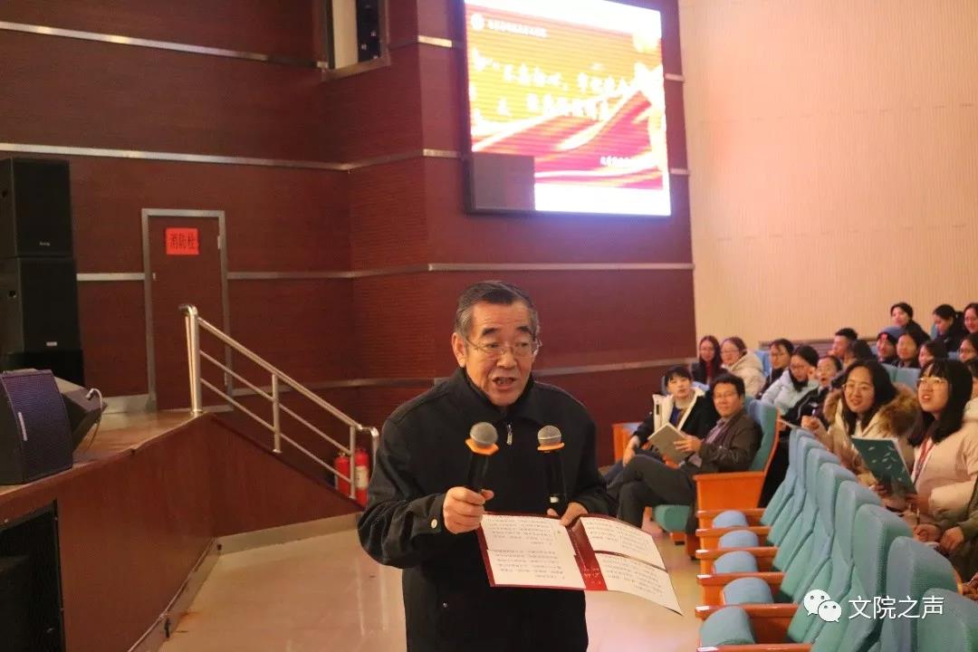2019年11月28日下午14时,太阳成集团tyc151cc“不忘初心,牢记使命”主题教育系列活动之传“诵”经典在学院楼报告厅举行。本场经典诵读活动,特邀我院退休教师杨燕民教授主讲,太阳成集团tyc151cc副院长石海光副教授主持。