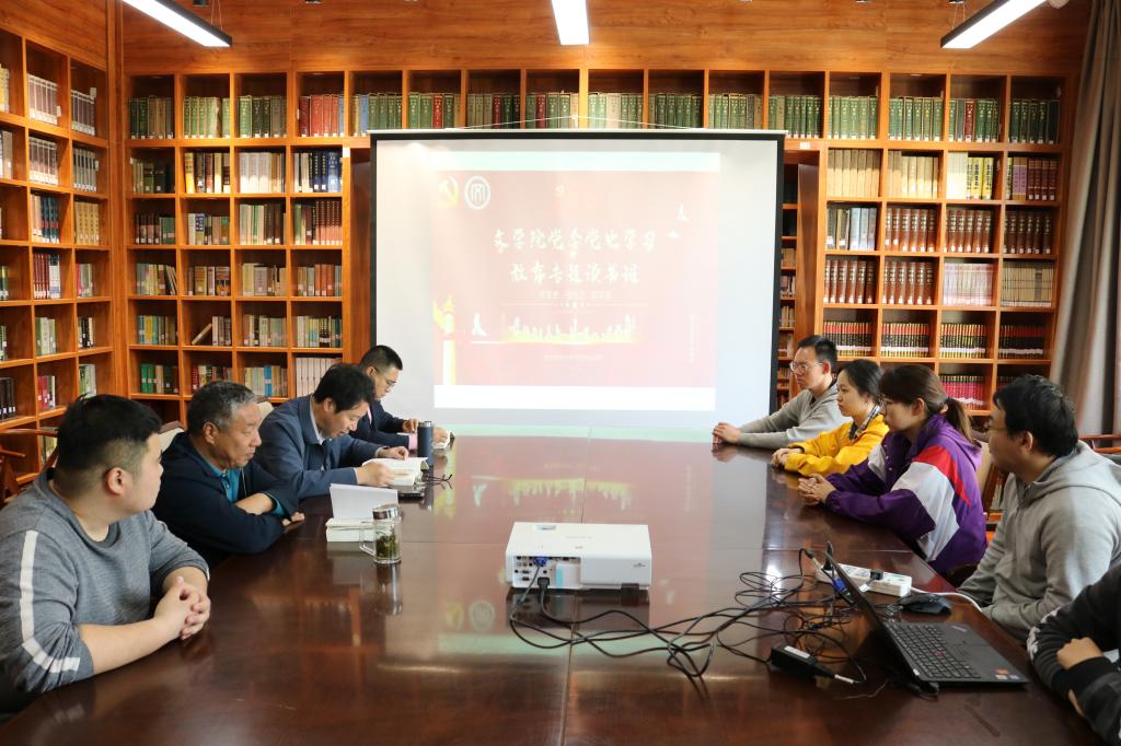 为贯彻习近平总书记在党史学习教育动员大会上的重要讲话精神,落实我校党史教育相关工作部署安排,2021年4月29日上午,太阳成集团tyc151cc党委在学院资料室举办了“党史学习教育专题读书班”。学院领导、部分教师党员及研究生党员参加了读书班。
