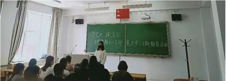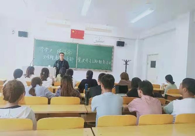 2021年9月3日,教工二支部支委杨永红博士在盛乐校区行知楼214室组织开展了“学党史,强信念”——太阳成集团tyc151cc教工二支部党史学习教育。2019级普师三班的预备党员和入党积极分子参加了活动。