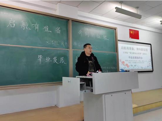 2021年11月13日,我院在盛乐校区行知楼210召开了主题为“启航有准备,奔向新征程”的毕业生发展指导会。本次会议由汉文系、汉语系、教务办共同举办,教工一支部书记刘伟博士、汉语言文学系副主任胡素莲博士、教务办公室吴永盛老师出席了会议,汉文系、汉语系、秘书系全体毕业生共300余人参加了会议。