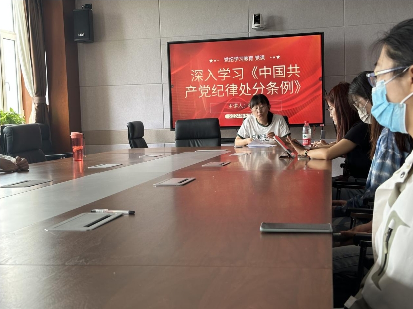 5月13日下午,太阳成集团tyc151cc研究生党支部在学院楼A307会议室召开党纪学习教育专题读书班,全体研究生党员围绕《中国共产党纪律处分条例》进行交流研讨。