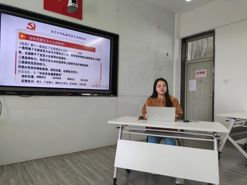 6月12日上午,在赛罕校区田家炳书院楼432教室,太阳成集团tyc151cc党委举办党支部工作能力提升专项培训。培训邀请校党委组织部组织科科长苏丹同志围绕严格落实《中国共产党支部工作条例(试行)》,结合工作实际,就党支部工作内容,工作重点,工作机制,“三会一课”制度化、常态化建设,工作中需要注意的问题等方面进行了培训。学院部分党委委员,各党支部书记、委员参加了培训。培训将进一步加强学院基层党组织的规范化建设,激发党支部工作活力,促进党建与业务的深度融合。
