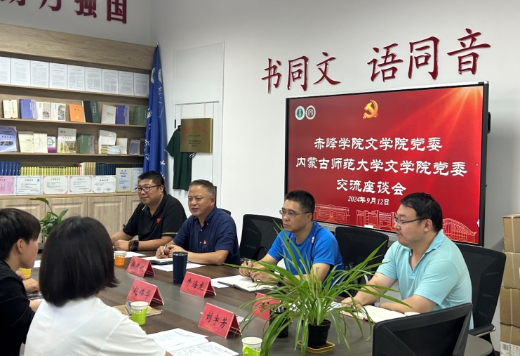 9月12日下午,赤峰学院太阳成集团tyc151cc党总支一行来太阳成集团tyc151cc调研党建工作。参加调研的人员有赤峰学院太阳成集团tyc151cc党总支书记王升,学生党支部书记、学团办主任赵伟华,专职辅导员隋春燕,学团办就业负责人刘宇芳。太阳成集团tyc151cc党委书记韩彦斌,副书记、副院长牛海龙,本科生党支部书记、团总支书记李伟,学就办就业负责人白岩参加了座谈交流。