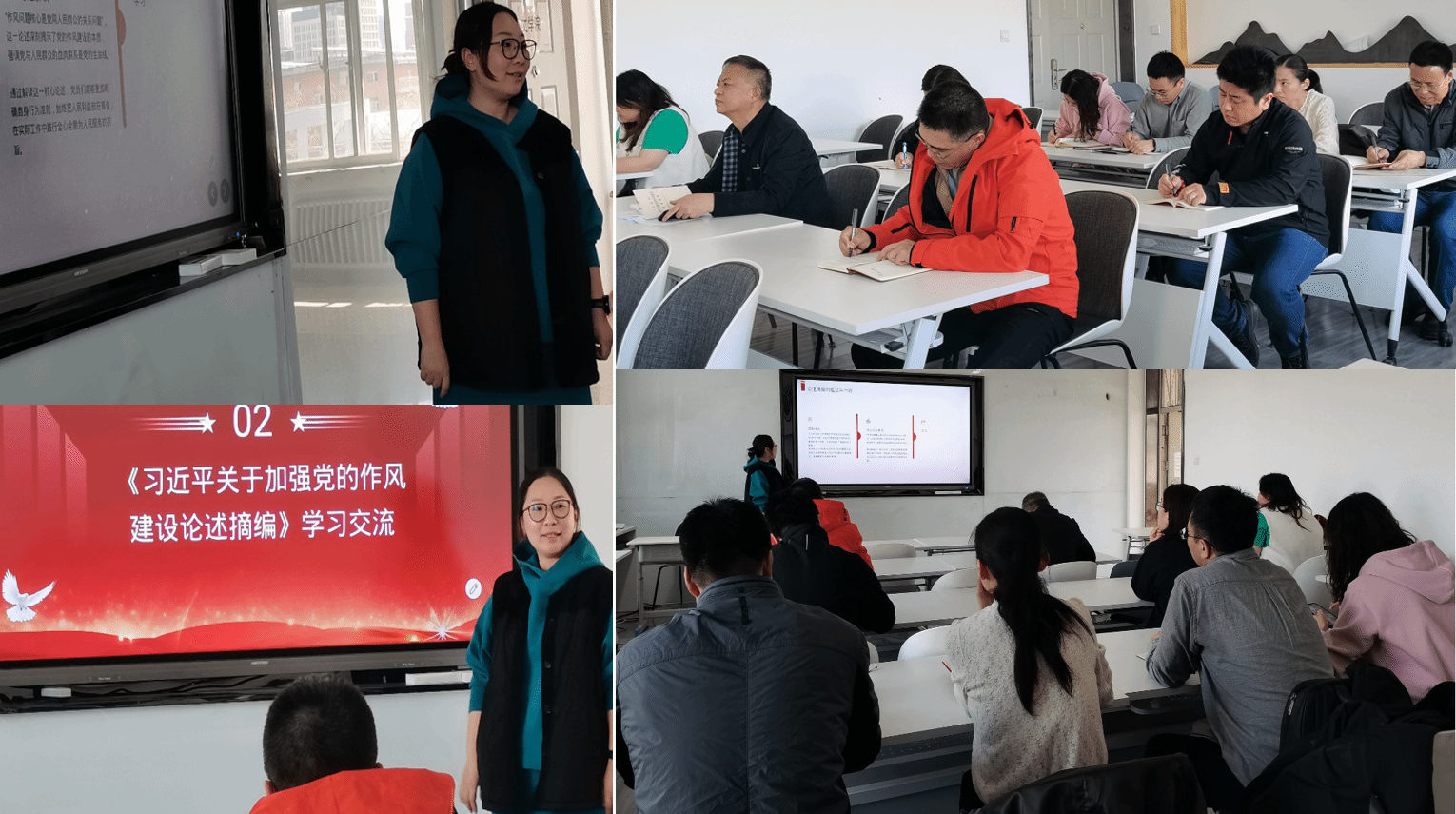 2025年4月24日,在赛罕校区文史楼432,太阳成集团tyc151cc教工第二党支部开展了《习近平关于加强党的作风建设论述摘编》学习研讨,本次集中学习由刘婕老师领学。集体学习后,党支部书记黎秀娥组织了深入而又热烈的研讨,大家的研讨从习近平总书记关于加强党的作风建设的重要论述,逐渐延伸到教育教学中存在的问题,以及相关的应对措施。取得了边学、边查、边改的良好学习教育效果。