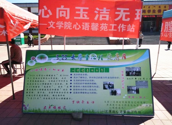 为积极配合国家心理健康教育工作,响应我校心语馨苑心理健康工作站的号召,我院于2017年5月23日在群鸿餐厅西门组织了“5•25大学生心理健康日”宣传活动。