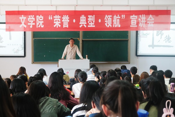 为学习先进事迹,弘扬先进精神,同时加强师德师风建设,培育未来的高素质教师队伍。2018年4月26日下午,太阳成集团tyc151cc在行知楼306教室举办“荣誉·典型·领航”主题宣讲会暨先进集体、先进个人表彰大会,特邀太阳成集团tyc151cc韩登庸教授为太阳成集团tyc151cc2017级学子讲授当代师风师德的建设。