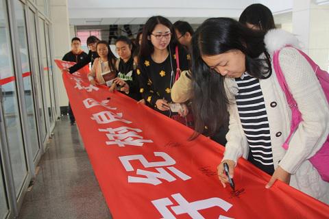 为了调动师生参与热情,在1023日,我院组织了签名活动,每位同学都郑重地签下了自己的名字,作出了自己的承诺:安全从我做起,从身边做起。同时,在学院楼悬挂文明守纪树良风,安全教育我先行条幅,进行宣传。