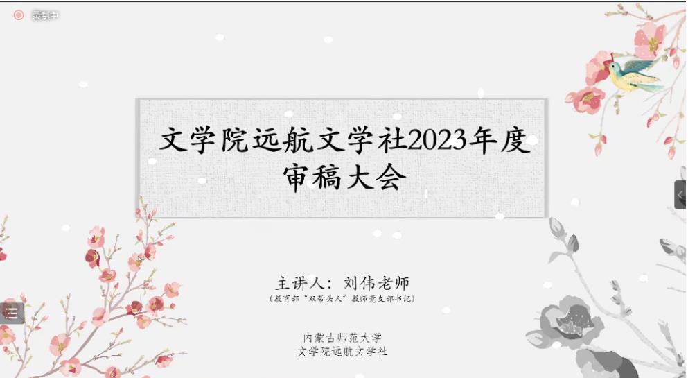 为认真贯彻学习党的二十大精神,培养我院学生的人文情怀,提高学生专业素养,2023年1月29日晚,太阳成集团tyc151cc远航文学社召开《春鸣》杂志2023年第1期审稿会。本次会议采取线上方式进行,28名师生参加了本次审稿会。会议由汉语言文学系主任、教工第一支部书记刘伟教授主持。