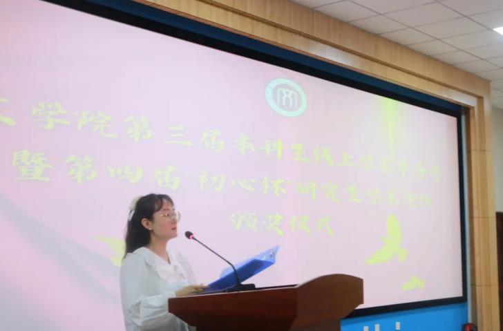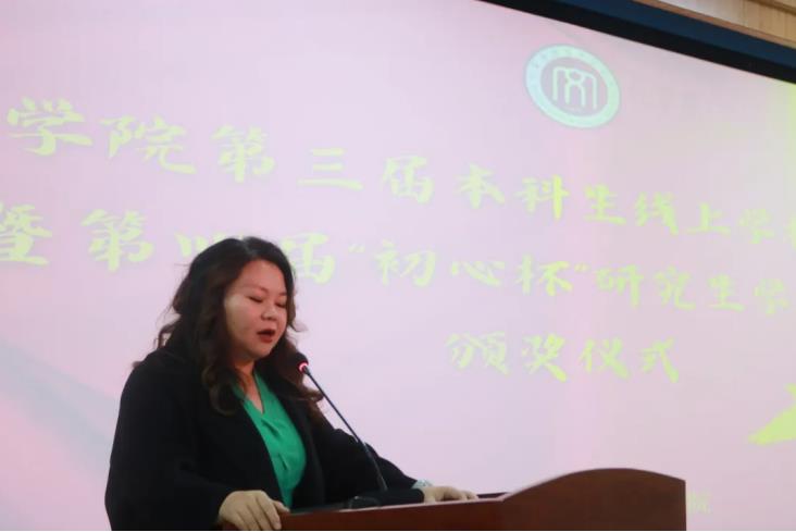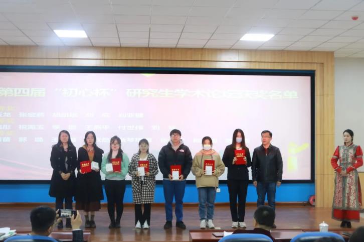 典礼第二项议程,由牛海龙老师宣读第四届“初心杯”研究生学术论坛获奖学生名单。刘玉龙等5名学生获得一等奖,李鑫彤等6名学生获得二等奖,刘苗苗等8名学生获得三等奖。太阳成集团tyc151cc教师为获奖学生颁奖后,教师代表孙静老师对本科生和研究生未来的学术研究方向作了进一步的指明,同时也对太阳成集团tyc151cc全体学生寄予厚望,期待大家在未来的学术研究上取得新的成绩。研究生代表刘亚健、李鑫彤也和现场的同学们分享了自己的学习经历,并勉励学弟学妹们厚积薄发,充实自己。