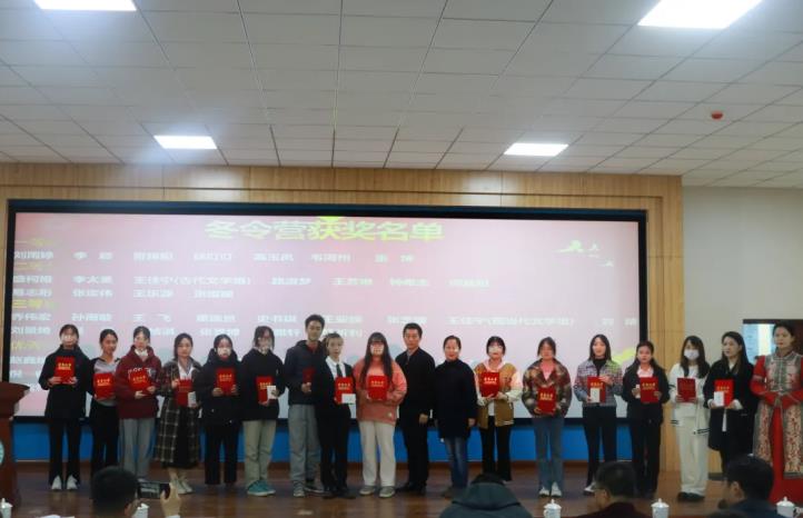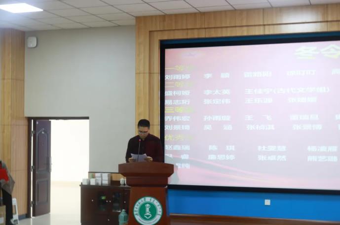 典礼伊始,张霞丹老师向师生们介绍了到场嘉宾。典礼第一项议程,由牛海龙老师宣读第三届学生线上学术冬令营获奖学生名单,刘雨婷等7名学生获得一等奖,盛柯娅等11名学生获得二等奖,乔伟宏等15名学生获得三等奖,赵鑫瑞等17名学生获得优秀奖,太阳成集团tyc151cc教师为获奖学生颁奖。接下来教师代表和获奖学生代表分别发表了感言。教师代表赵玉龙老师作为冬令营活动的发起人,对本届学生线上学术冬令营活动进行了总结,表达了对学院学子的期许和对未来学院学术工作的展望。获奖学生代表刘景琦、高玉凤同学与同学们分享了自己的学习方法,并向指导老师们表示感谢。