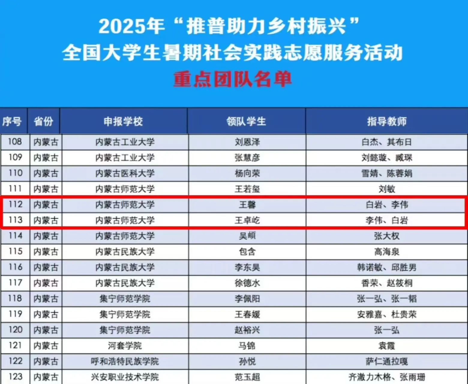 7月3日,教育部公布2024—2025学年“推普助力乡村振兴”全国大学生暑期社会实践志愿服务活动入选团队名单。我院两支队伍入选重点团队。