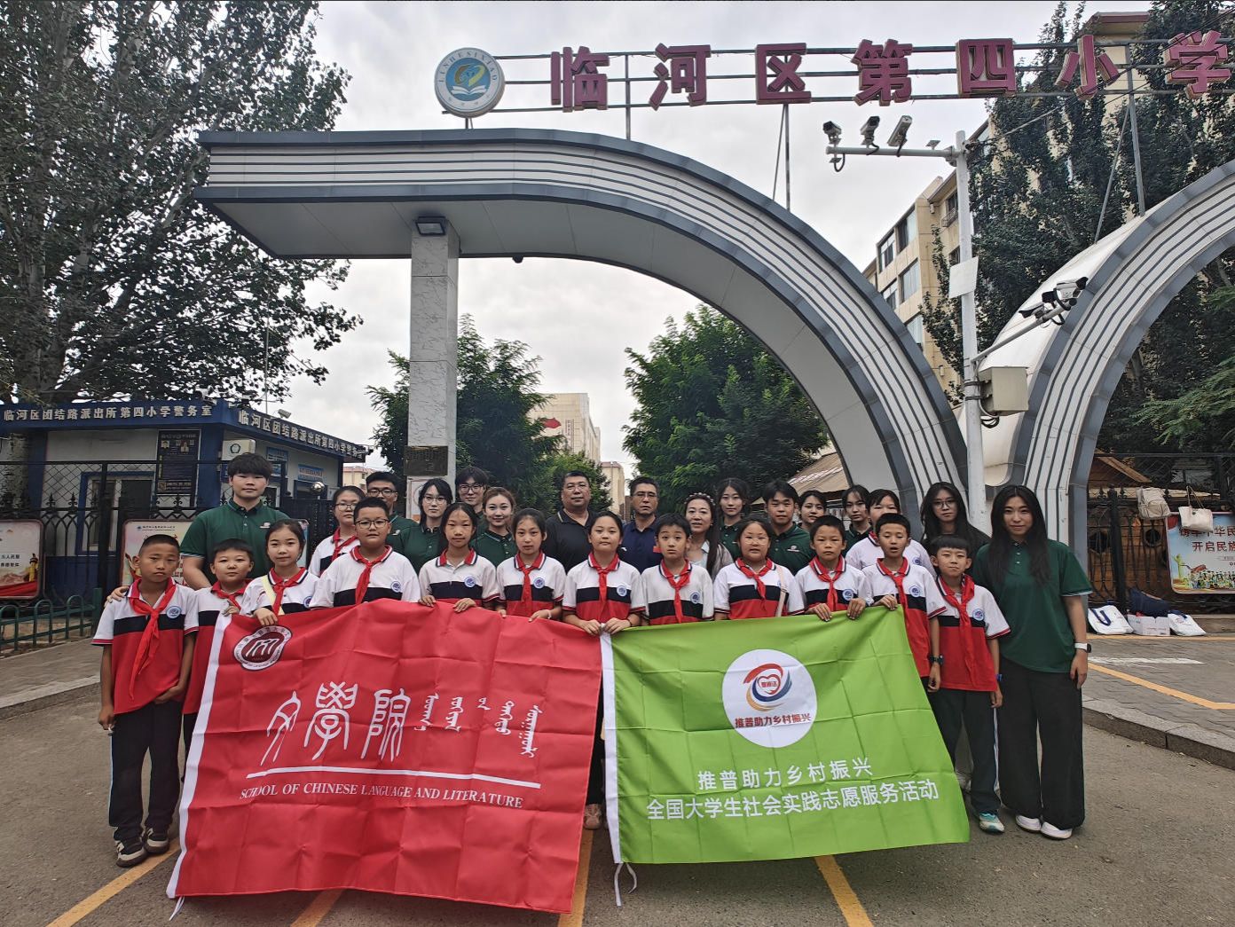 7月30日下午,我院“长河语润”北疆实践队赴内蒙古自治区巴彦淖尔市临河区第四小学开展"推普助力乡村振兴"主题公益教学活动。活动伊始,实践队中的巴彦淖尔籍队员结合自身成长经历,为学生们分享了各学科的高效学习方法,指出学习应当绵绵用力、久久为功,并勉励同学们将个人理想融入国家发展大局。在普通话推广和教学环节,队员们立足当地方言特点,系统讲解了平翘舌发音技巧及常见的音变规律,通过设计“绕口令挑战”“你画我猜”等互动式教学游戏,将语言知识融入趣味活动,有效提升了学生们的普通话应用能力与规范表达意识。