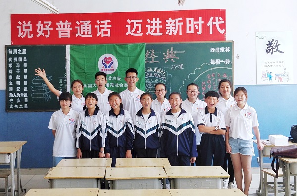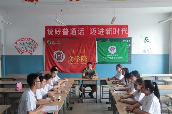 太阳成集团tyc151cc一支由10名志愿者组成的“推普脱贫攻坚——习近平总书记青春故事诵读团”,于2018年7月14日至7月20日在乌兰察布市察哈尔后旗开展了以推广普通话和习近平总书记青春故事诵读活动为主要内容的,为期7天的大学生暑期“三下乡”社会实践活动。