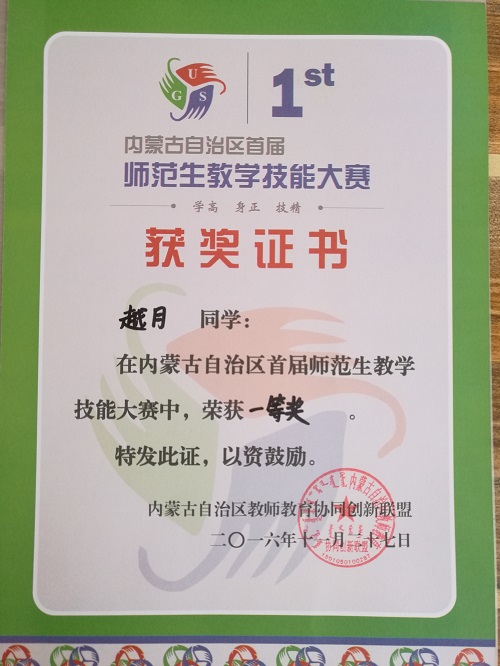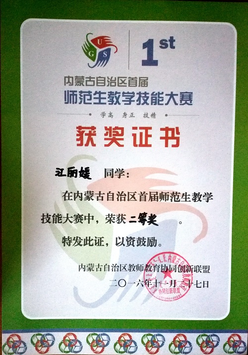 11月27日,由内蒙古自治区教师教育协同创新联盟主办、太阳集团承办的自治区首届师范生教学技能大赛在太阳集团举行,来自全区多所高等师范院校的师范生参加比赛。我院2014级和2013级汉语言文学班的越月、江丽媛两位同学在汉语言文学专业组的12名参赛选手中脱颖而出,分别荣获一等奖、二等奖。本次技能比赛由阚小琴老师和陆有富老师指导,毛润民老师负责统筹安排,领队为张钧老师。