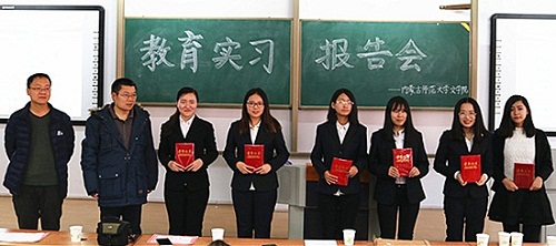 9月5日开始,我院87名学生在土默特左旗民族中学高中部、初中部及小学部进行了为期四十五天的实习。在实习期间采取学院、指导教师、实习学校实习生组长和实习生宿舍长四级管理机制,对学生的实习活动、作息时间、行为规范等进行全方位的管理。经过学院的周密安排、精心组织,在土默特左旗民族中学的大力支持下,学生圆满完成了预期的各项实习任务,获得了语文教师专业能力的全方位发展。