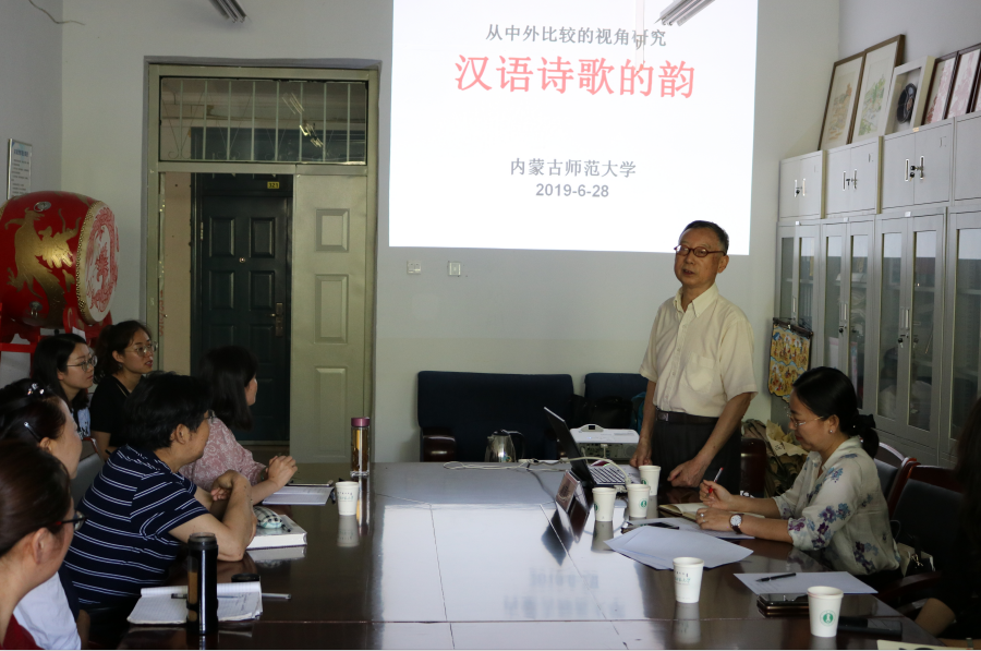2019年6月28日,著名语言学家、音韵学家鲁国尧教授莅临我院,围绕“汉语诗歌的韵”这一主题做了专场学术讲座。讲座从中外比较的视角深入细致地解析汉语诗歌的韵。讲座由闫艳院长主持,我院中国古典文献学、汉语言文字学、语言学及应用语言学的师生聆听了此次讲座。