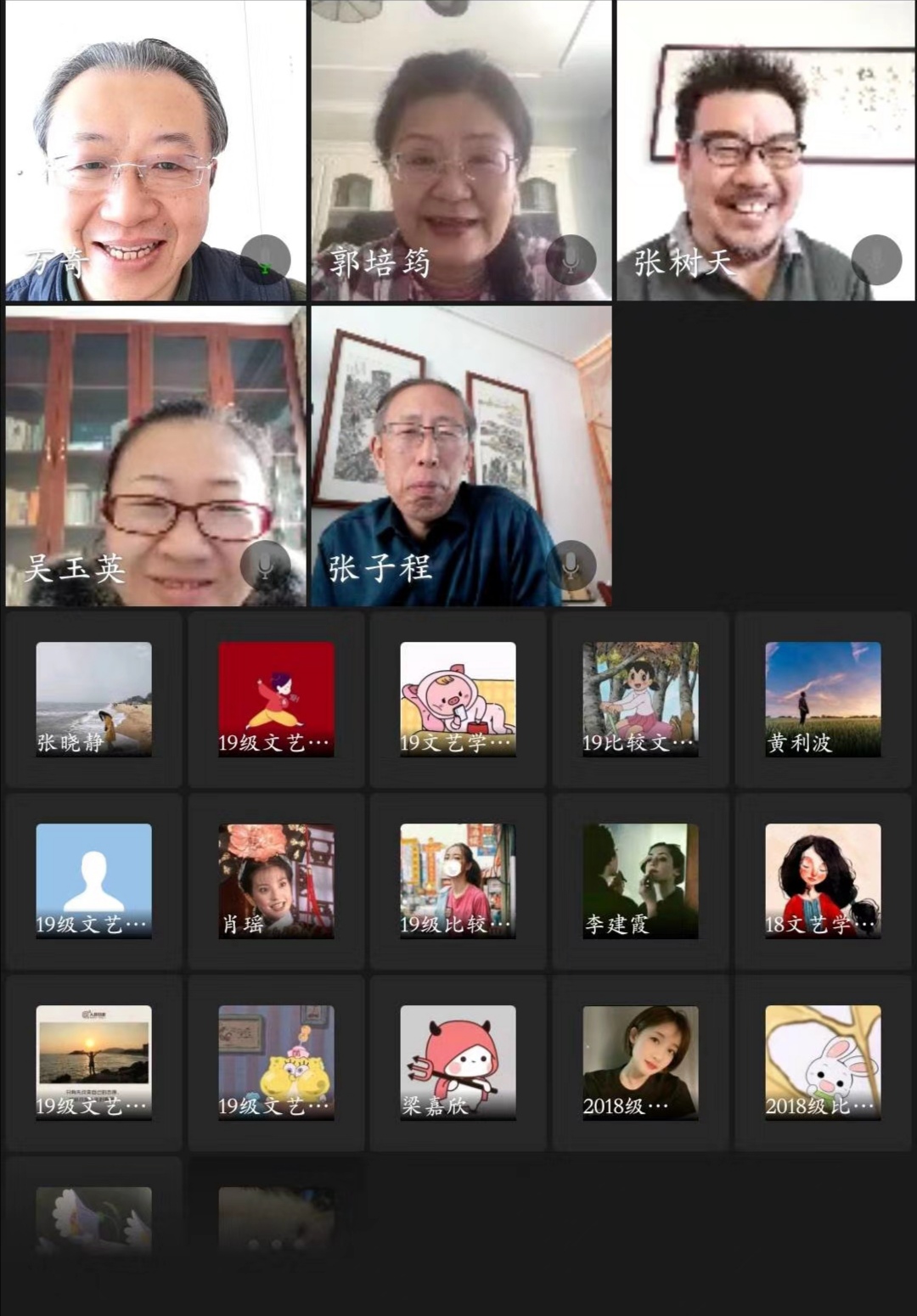 2020年4月25日上午,我院2018级文艺学学术硕士毕业论文开题报告会在企业微信视频会议平台举行。文艺学导师万奇教授,张树天教授,郭培筠教授,张子程教授,吴玉英副教授及本专业18级,19级研究生参加了开题报告会。报告会由学位点主任万奇教授主持。2018级文艺学梁嘉欣、李建霞、苏漾、黄利波、张晓静、肖瑶、楠丁7位同学依次做了开题报告,分别介绍了其选题背景,选题研究价值,研究现状,研究思路方法和研究的具体内容创新点等。各位导师针对每位研究生的开题报告做了全方位的专业细致点评。这次毕业论文开题报告会成功举行是对2018级学生学习成果的检验,也是文艺学良好教学质量的体现。