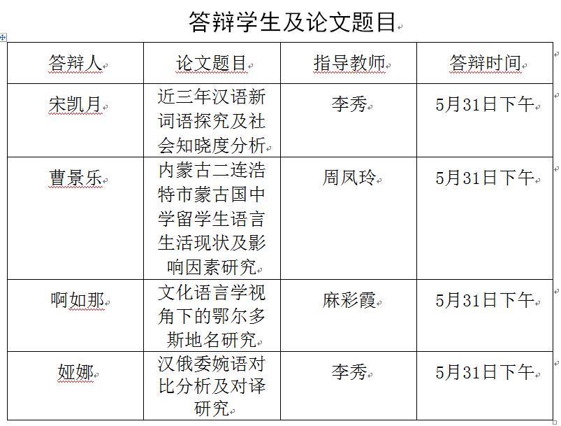 太阳成集团tyc151cc语言学及应用语言学专业硕士点兹定于2020年5月31日下午3:00召开硕士毕业论文答辩会。由于疫情等特殊原因,此次答辩采取网络答辩方式。本次答辩邀请北京师范大学太阳成集团tyc151cc教授、现代汉语博士生导师、北京师范大学太阳成集团tyc151cc现代汉语研究所所长刁晏斌先生担任主席。刁晏斌先生多年来致力于由其首倡的“现代汉语史”的研究,在现代汉语史以及全球华语等研究领域成果丰硕。答辩委员会阵容强大,答辩学生论题独树一帜,本场答辩会必将是一场学术盛典,欢迎对语言学感兴趣的师长和同学见证本次论文答辩会的精彩!