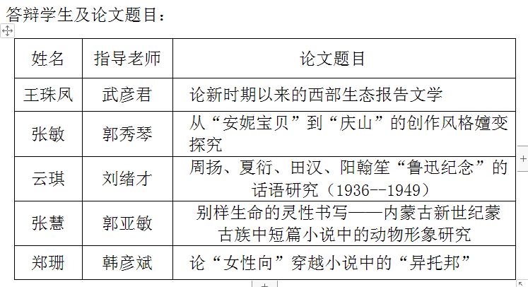 太阳成集团tyc151cc2020届中国现当代文学硕士论文答辩会定于5月31日上午8:30召开。受新冠肺炎疫情影响,本次答辩采用网络视频方式进行线上答辩。欢迎各位老师和同学莅临指导!
