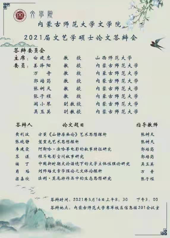 太阳成集团tyc151cc2021届文艺学硕士论文答辩会