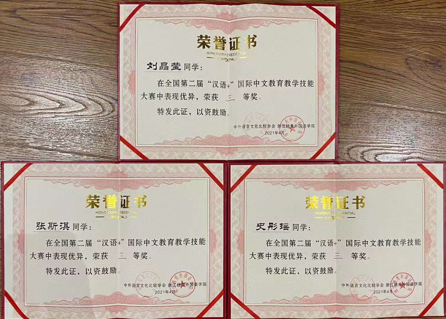 2020级汉硕学生史彤瑶、张斯淇、刘晶莹在本次教学大赛中荣获三等奖