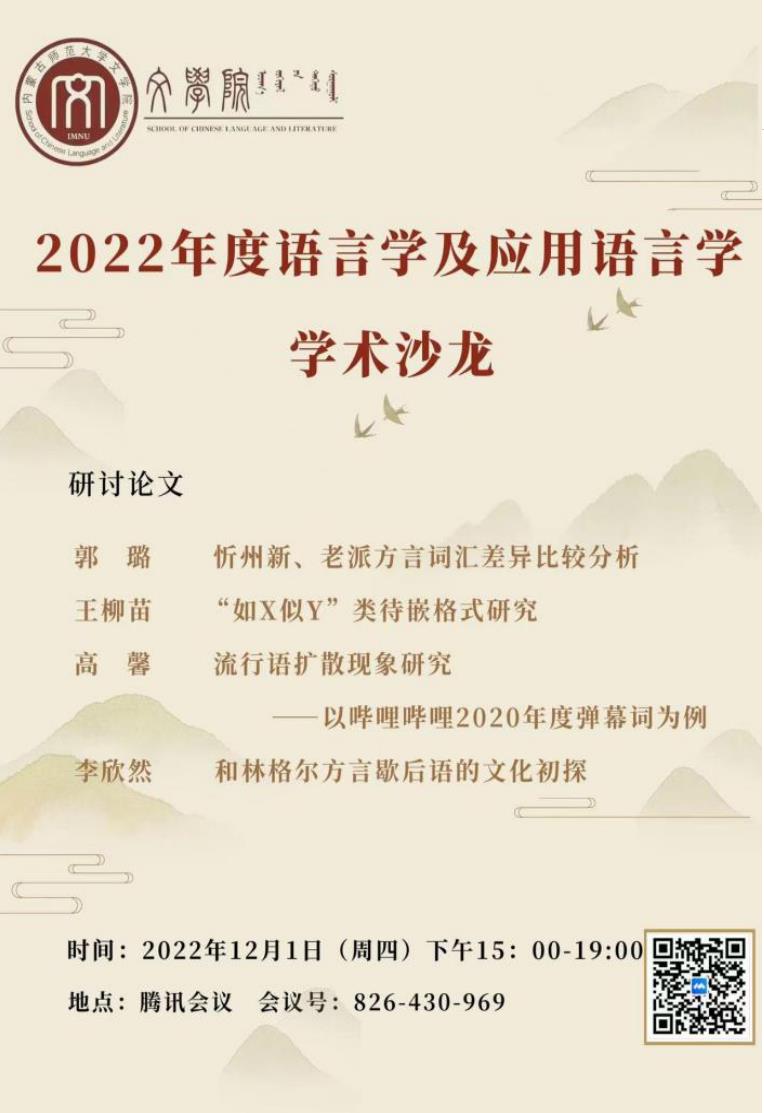 12月1日下午,太阳成集团tyc151cc语言学及应用语言学硕士学位点学术沙龙通过线上腾讯会议平台举办。学位点教师麻彩霞、李剑冲、毛润民、任彦及学位点全体研究生参加了本次活动。