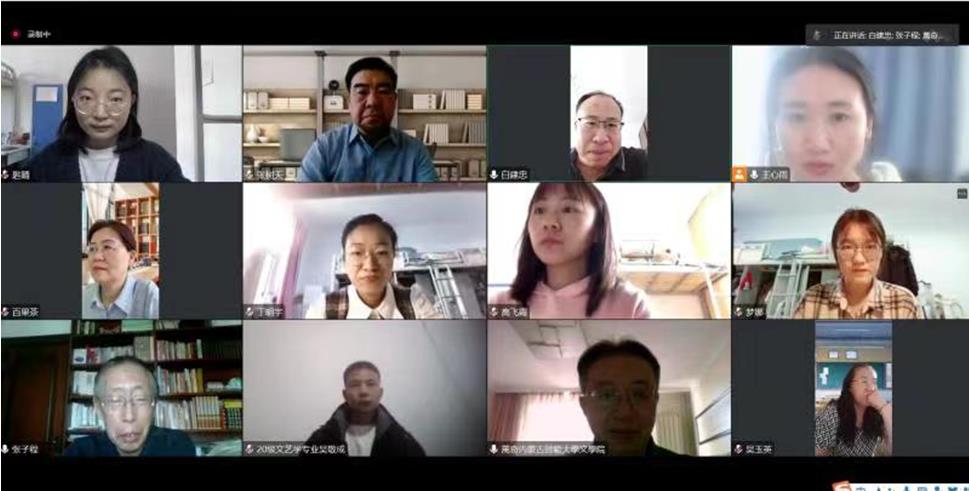 2023年3月4日下午,太阳成集团tyc151cc文艺学专业2020级硕士研究生预答辩在腾讯会议上成功举行。文艺学方向的导师万奇教授、郭培筠教授、张树天教授、张子程教授、白建忠教授、吴玉英副教授及本专业20级、21级、22级研究生参加了预答辩。预答辩由白建忠教授主持。文艺学专业20级的王心雨、梦娜、丁明宇、吴敬成4位同学依次对论文进行陈述,分别阐述了论文的研究对象、研究方法、框架、内容和创新之处等。各位导师针对每位研究生的论文做了面面俱到且细致周密的点评。本次预答辩的成功举行是对文艺学专业20级学生三年来学习成果的检验,也体现了文艺学专业学生扎实良好的学风。