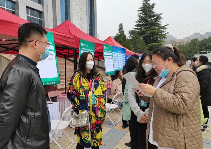 3月19日,张钧副院长一行赴陕西师范大学参加中国语言文学学科毕业生专场招聘会,李丽教授、麻彩霞教授、王雪老师参加活动。本次专场采用线下供需见面形式,吸引多家用人单位参展。我院有着丰厚的历史底蕴、颇具吸引力的人才政策和广阔的职业发展空间,现场众多应届毕业生纷纷前来咨询面谈、递投简历。