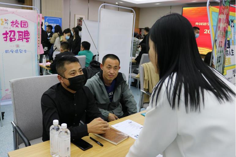招聘会现场,用人单位负责人向前来应聘学生介绍了招聘岗位,并详细解答各类专业问题。学生针对自己的需求与优势,选定心仪岗位,递交个人简历,等待后期面试,招聘过程井然有序。
