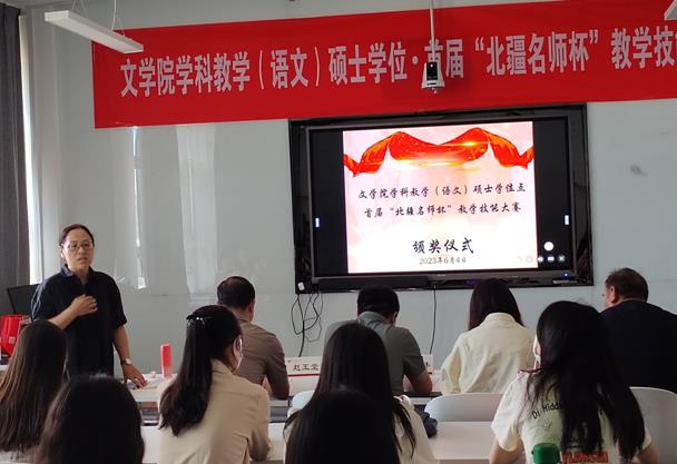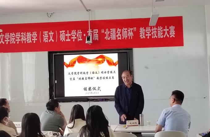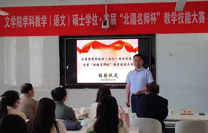张钧副院长在总结中对各位评委的辛勤工作表示感谢,同时对筹备本次比赛的工作人员表达了诚挚谢意。他指出,本次比赛是我们全院师生深入开展学习贯彻习近平新时代中国特色社会主义思想主题教育的重要内容,对全面提高研究生人才培养能力,加快推进研究生教育高质量发展具有重要意义。同时也为学科教学(语文)专业学位研究生的技能锻炼搭建了平台,为学院组织选拔综合素质高、专业技能水平突出的研究生参加自治区及全国性的专业技能比赛奠定了基础。他强调,本次比赛旨在提升专业学位研究生的教育教学实践能力,以赛促教、以赛促学、以赛促改。比赛的结果不重要,重要的是通过本次比赛,通过评委的专业点评,大家能够学到什么知识,提升什么能力,明白自己将后努力的方向。也希望同学们在比赛过程中,能够以获奖的同学为榜样,努力查找不足,在将后的教育实践中不断提高,不断改进,取得更大进步。