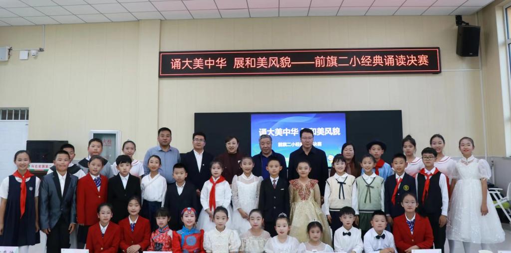 10月25日下午,“诵大美中华 展和美风貌——前旗二小经典诵读决赛”在科右前旗第二小学乐学楼一楼阶梯教室举行。高林广、陆有富、石海光担任评委,并为获奖同学颁发了证书,高林广作了点评发言。决赛中共有17组作品、31位选手参赛,最终评选出一等奖作品4个、二等奖作品2个、三等奖作品11个,所有参赛学生均收到了由太阳集团国家通用语言文字推广基地特意准备的精美奖品。