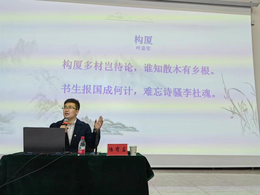 10月25日上午,太阳成集团tyc151cc院长陆有富教授在察尔森农创中心作了题为“声情两相宜:古典诗歌的吟诵传统及其教学呈现”的学术报告,科右前旗教育局副局长张敬媛、旗教育局姜海艳及科右前旗相关学校语文教师参加了活动。