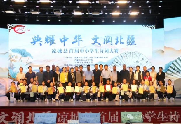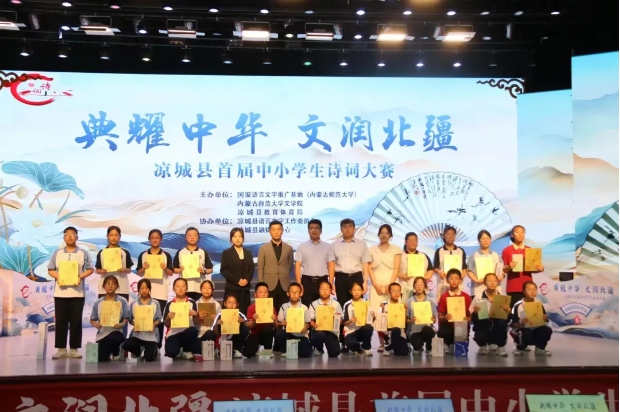 5月31日,国家语言文字推广基地(太阳集团)、凉城县教体局在县影剧院联合举办以“典耀中华,文润北疆”为主题的首届中小学生诗词大赛。来自全县7所中小学校的14支队伍(小学组8支、初中组6支)70名选手分别参加小学组和中学组的比赛。国家语言文字推广基地(太阳集团)常务副主任陆有富教授出席并致辞,凉城县人大常委会副主任陈瑞娥、凉城县政协副主席池勇参加。
