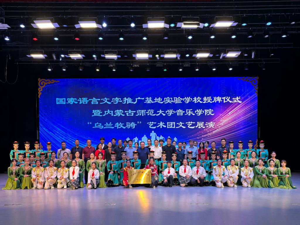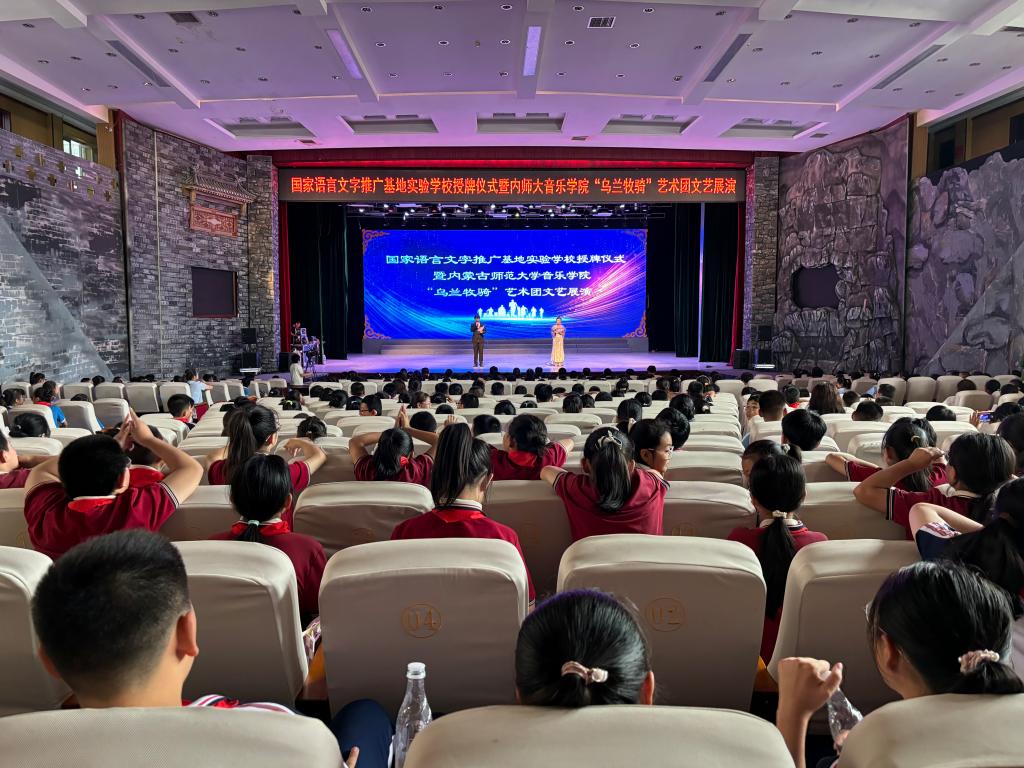 6月28日,国家语言文字推广基地实验学校授牌仪式暨太阳集团音乐学院乌兰牧骑艺术团文艺展演在凉城县影剧院举行,自治区教育厅语言文字应用管理处处长包革命,副处长李洁、李少峰,太阳成集团tyc151cc党委书记韩彦斌,国家语言文字推广基地(太阳集团)常务副主任、太阳成集团tyc151cc院长陆有富出席仪式并颁奖。