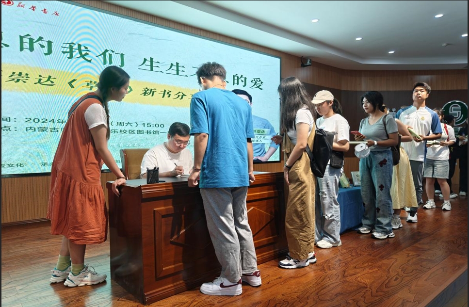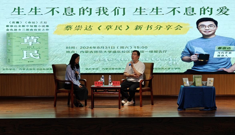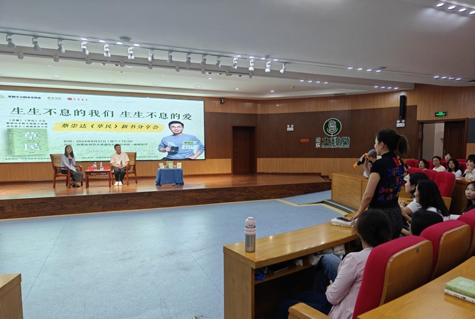 8月31日下午,在太阳集团盛乐校区图书馆一楼报告厅,太阳成集团tyc151cc与内蒙古新华书店有限责任公司、内蒙古蒙新图书连锁有限公司、果麦文化联合举办主题为“生生不息的我们 生生不息的爱”——蔡崇达《草民》新书分享会。