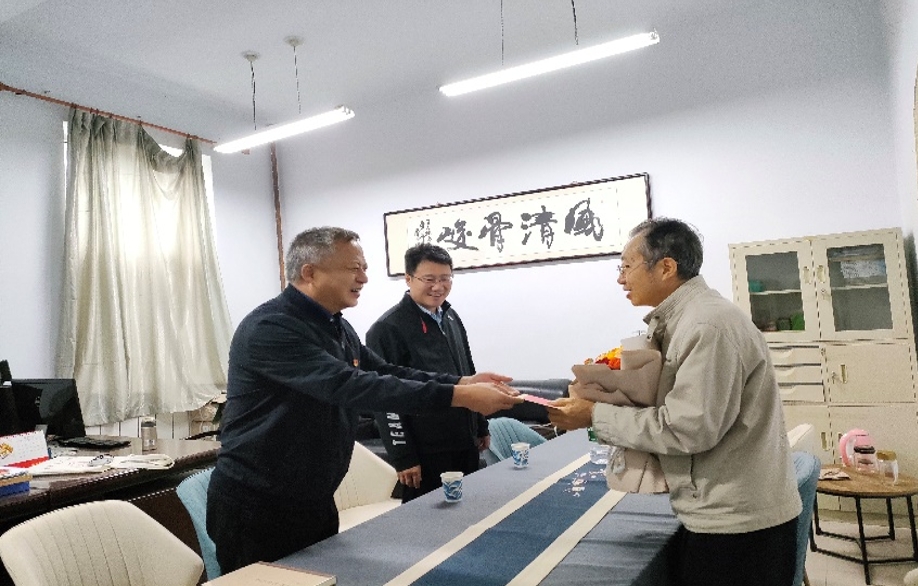 在新中国成立75周年之际,受校党委组织部委托,9月29日上午,太阳成集团tyc151cc党委书记韩彦斌、副院长石海光代表学院走访慰问自治区优秀共产党员万奇教授,将党的关怀和温暖送到优秀共产党员的心中。