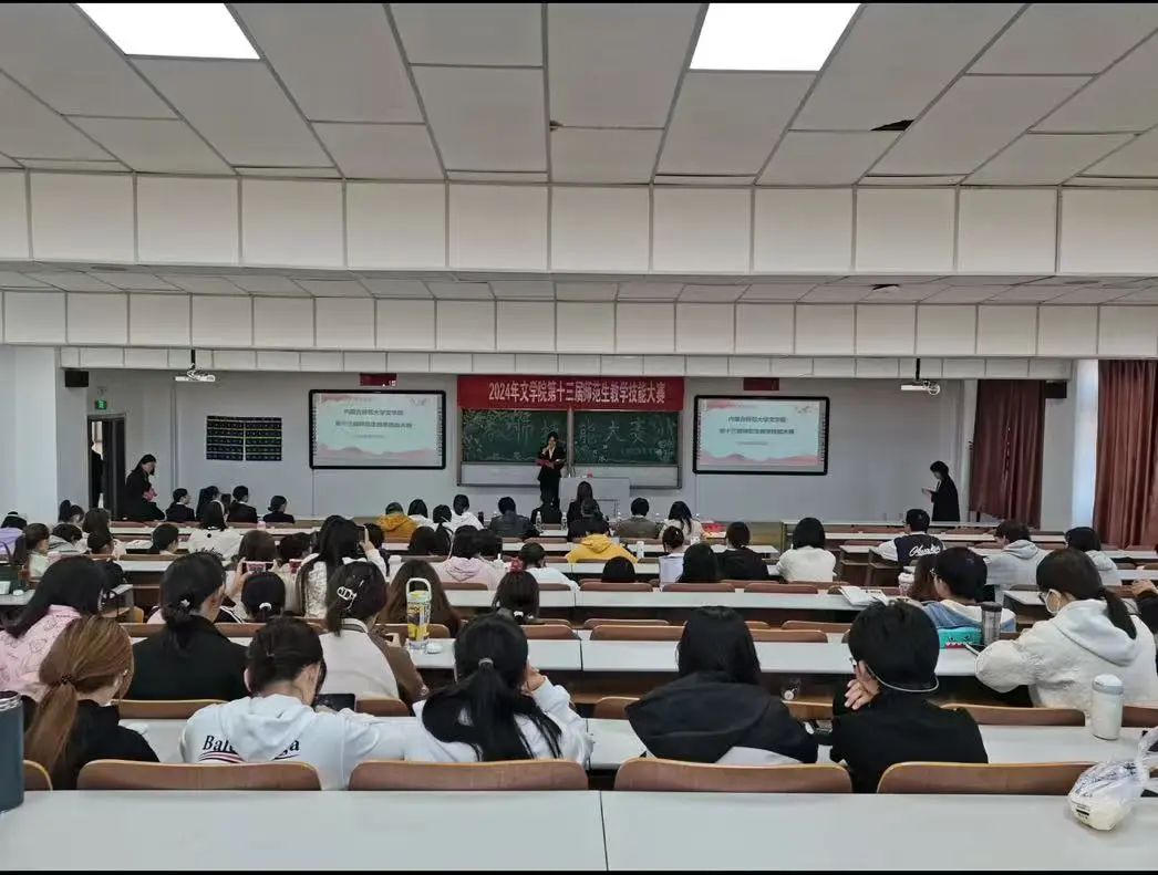 为进一步深化教师教育改革,构建以赛促练、赛练结合的师范生教学技能训练模式,切实提升我院学生的教学基本功与教学技能,根据学院《关于举办第十三届师范生教学技能大赛的通知》相关安排,我院于10月12日隆重举办了第十三届师范生教学技能大赛。大赛特邀学院资深语文教育专家毛润民老师担任评委会主任,汉语言文学系主任李瑞春、汉语国际教育系主任胡素莲、秘书学系主任高永强、人文教育与实践教学中心主任赵玉龙,青年教师张丽娟、常雪纯、王雪老师担任大赛评委。本次大赛分为班级初赛和院级复赛,通过层层选拔,最终经各班级初赛,有27名选手参加了院级比赛。
