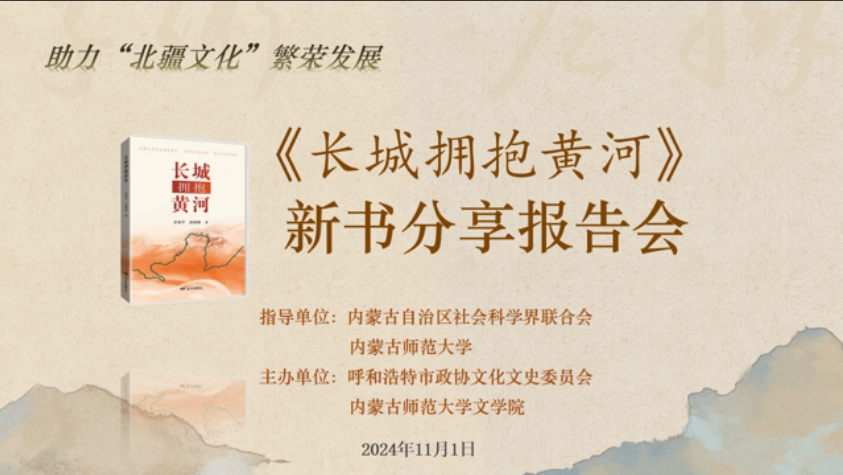 2024年11月1日下午,《长城拥抱黄河》新书分享报告会在太阳集团盛乐校区举行,本次活动由内蒙古社会科学界联合会与太阳集团联合指导,呼和浩特市政协文化文史委员会和太阳成集团tyc151cc共同主办。共有来自社会各界的代表和太阳成集团tyc151cc师生近200多人参加了报告会。