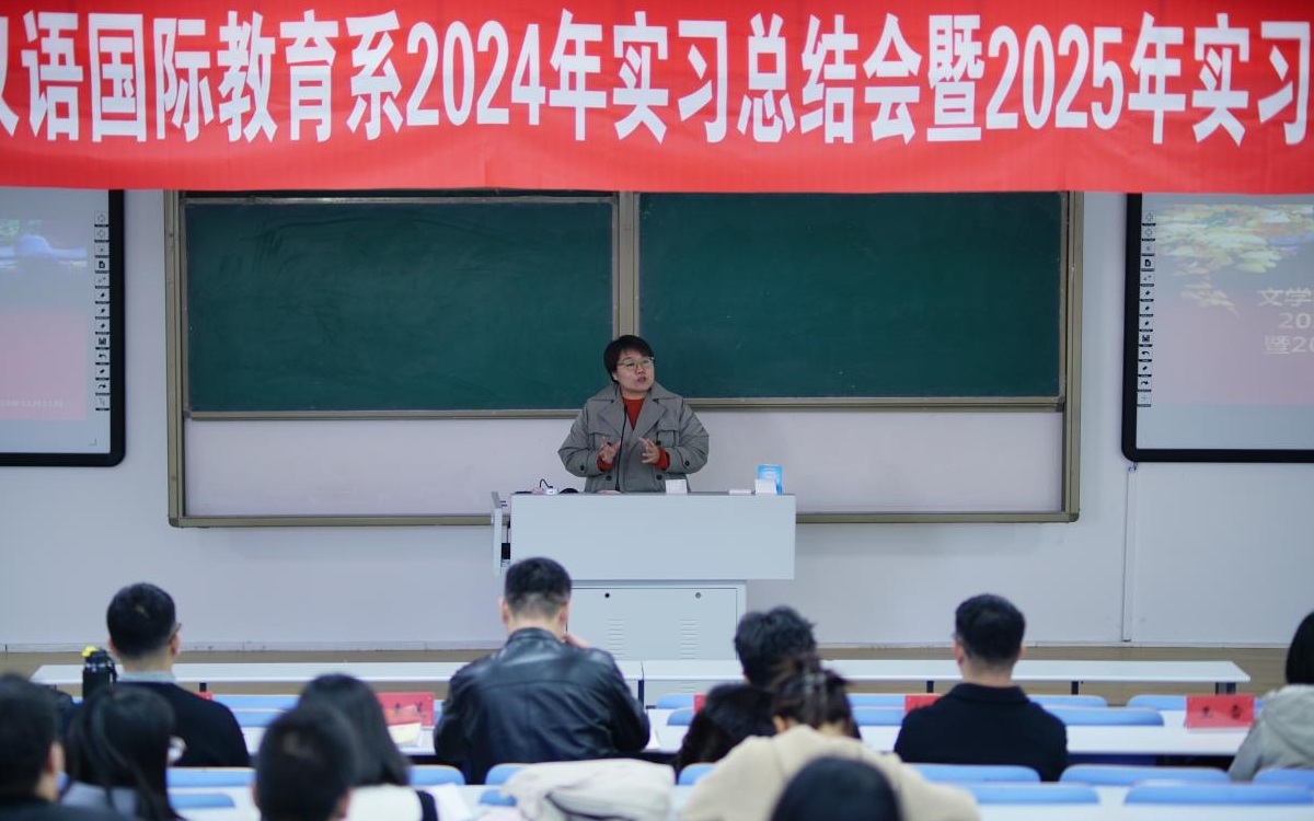 大会伊始,汉语国际教育系主任胡素莲老师致辞,她高度肯定了2024年实习工作,为2025年实习工作作出展望。