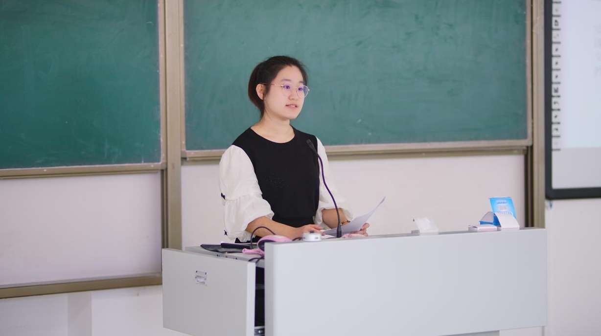 大会第二项,优秀实习生代表黄尘扬、朱奕霖、李睿清、武雨生、胡雅哲就听课、语言实践与文化体验课、写听课手册、备课等方面作出经验分享。
