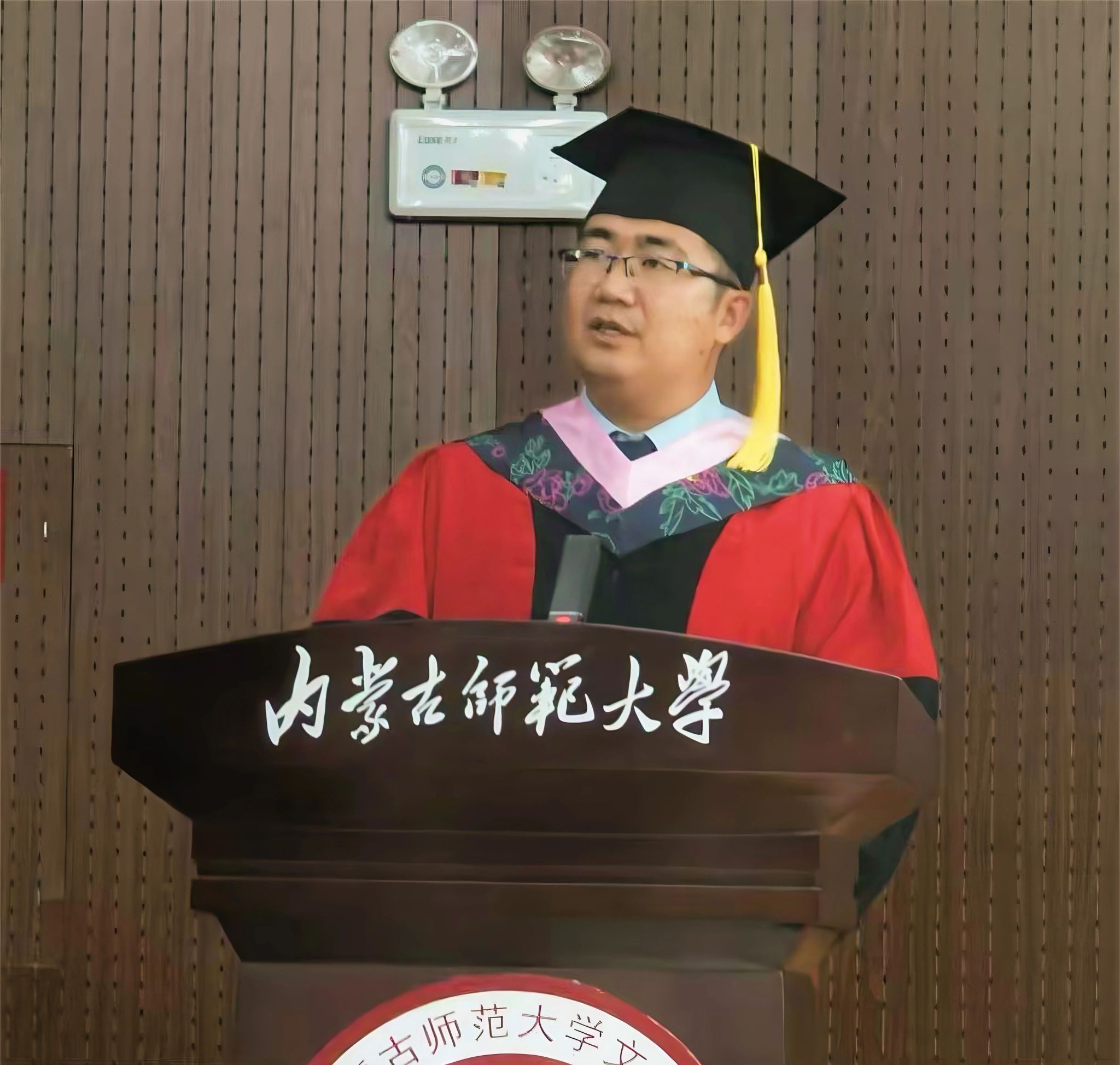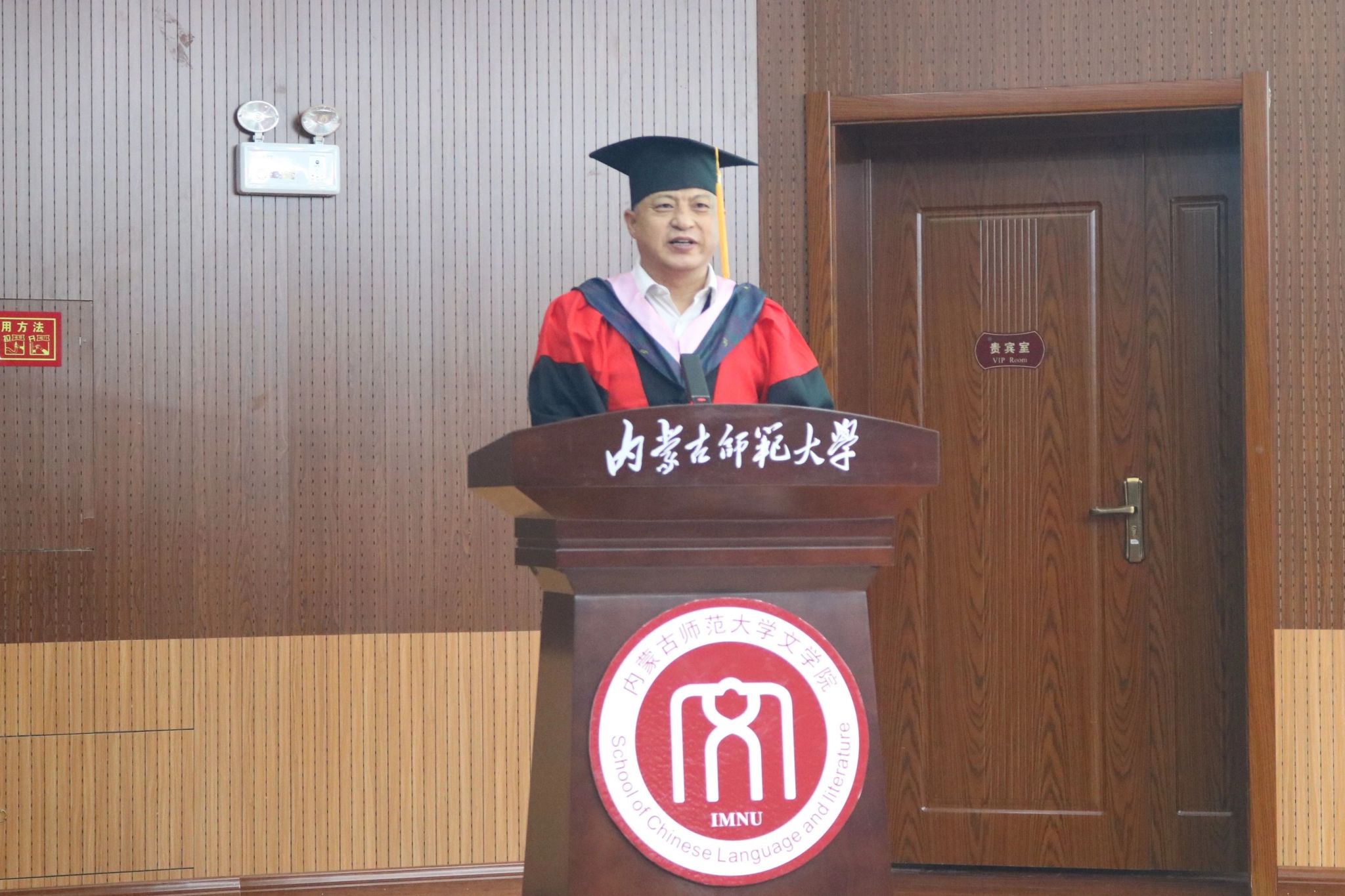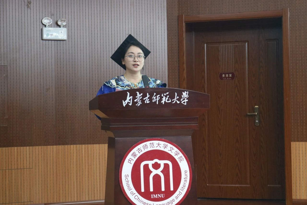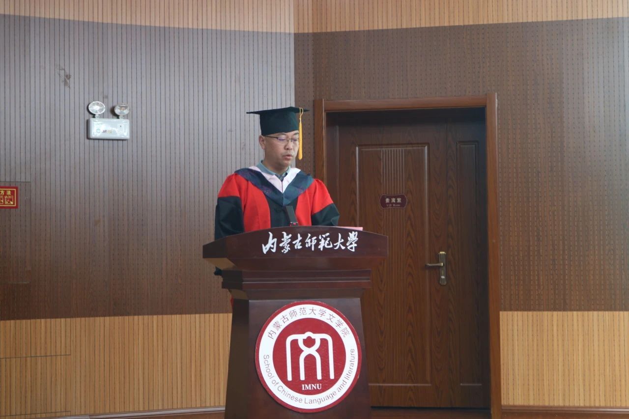 典礼在庄严的国歌声中拉开帷幕。学院本科毕业生代表陈心怡、研究生毕业生代表李欣然、学生家长代表石青、学院教师代表马奥远依次发言。学院副院长石海光和副院长张钧分别宣读了太阳成集团tyc151cc2025届博士、硕士研究生毕业生名单和本科生毕业生名单。随后,学院院长、学院学位评定委员会主席陆有富教授发表致辞,勉励毕业生们秉承师大精神,坚守人文情怀,他说:“数字智能技术虽然发展迅猛,但情感与审美体验永远是无法替代的过程,‘虽在父兄,不能以移子弟’。文学所守护的,正是那份源于生命深处的独特震颤与人性温度。它能使人们在人工智能的冲击下体验诗意人生、启迪生命智慧、涵养家国情怀,在浮躁中守住一片诗心,不迷失自我。”“一代人有一代人的使命与挑战,一代人有一代人的责任和担当。希望大家在未来的日子里不负所望,书生报国,以无生之觉悟做有生之事业。”最后,学院领导依次为上台的毕业生正冠拨穗,并颁发学位证书。