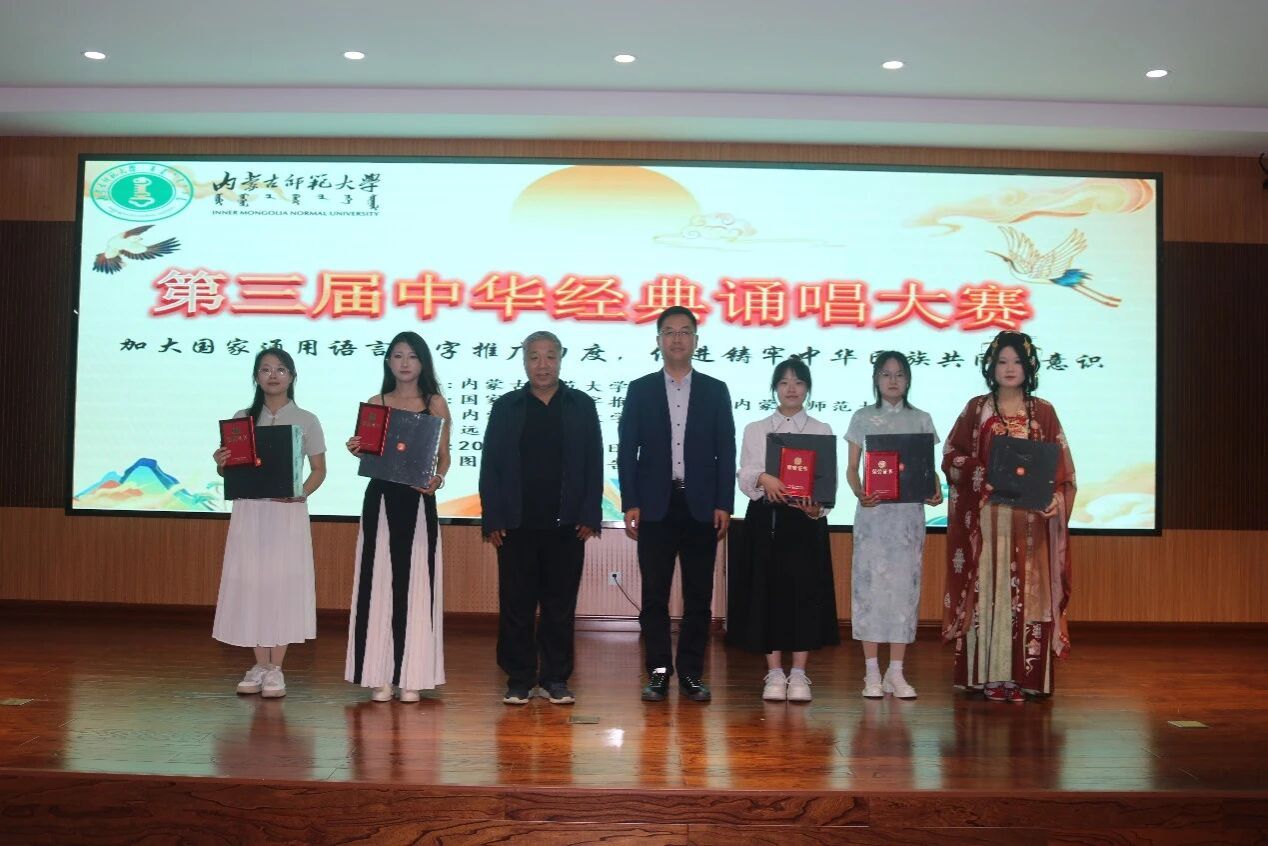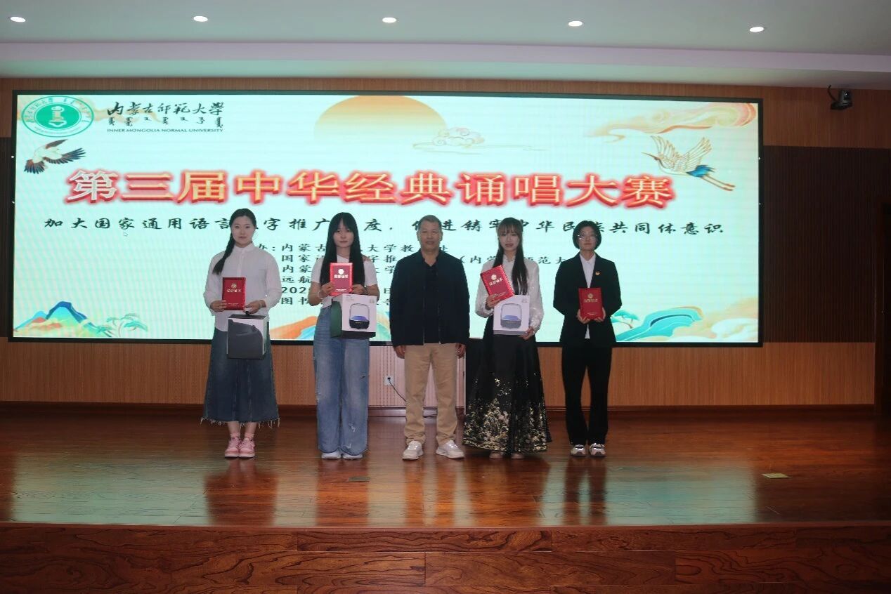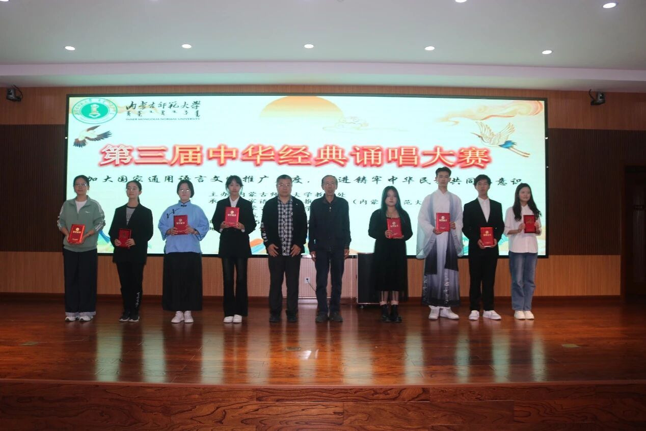 在第28届推广普通话宣传周期间,为深入贯彻落实党的二十大和二十届二中、三中全会精神,全面落实习近平总书记关于教育的重要论述和全国教育大会精神,服务国家战略、铸牢中华民族共同体意识,传承中华优秀语言文化,提升区域语言文字应用能力,进一步推动全民阅读活动深入开展,引导广大学生亲近中华经典,增强文化自信,提升我校大学生语言素养、构建文明和谐的书香校园,9月18日晚,由我校教务处主办,国家语言文字推广基地(太阳集团)和太阳成集团tyc151cc承办的第三届中华经典诵唱大赛在我校盛乐校区顺利举办。本次诵唱大赛以“加大国家通用语言文字推广力度,促进铸牢中华民族共同体意识”为主题,赛事分为各院级单位初赛和校级决赛两部分,各学院共推荐作品41件,经选拔,共有17件作品参加决赛。大赛邀请教务处副处长苏贵斌,国家语言文字推广基地(太阳集团)办公室主任高林广,太阳成集团tyc151cc副院长张钧,博士生导师张子程、付希亮担任评委。