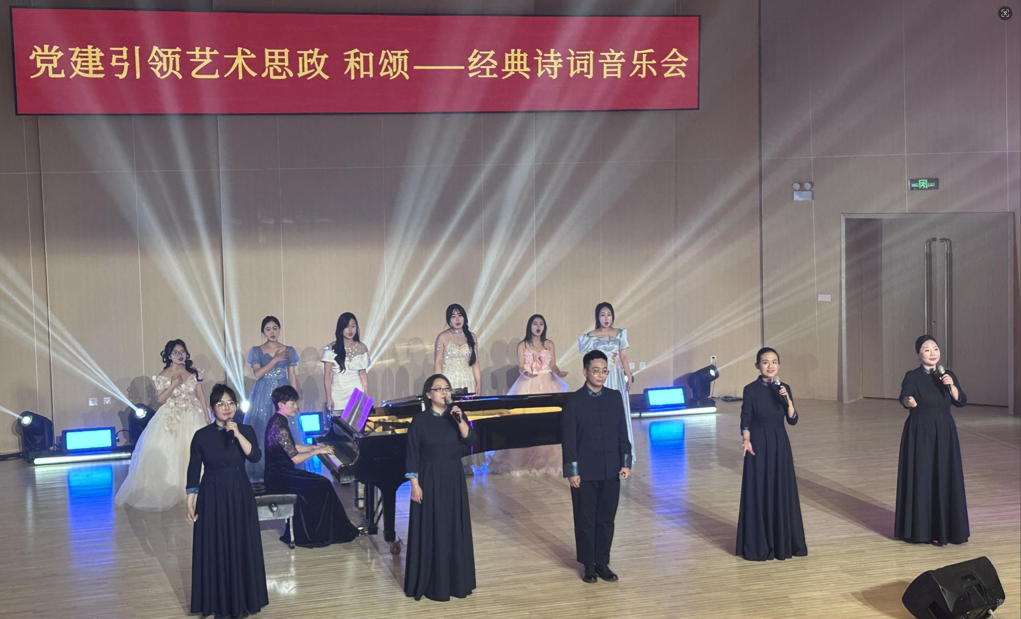 本场晚会以诗词为魂、艺术为体,融合朗诵、声乐、器乐、书法与舞蹈等多种表现形式,生动展现了中华优秀传统文化的深厚底蕴与美学价值。师生同台,情韵共生,不仅营造了教学相长、薪火相传的育人氛围,更在音韵流转之间传递了经典作品历久弥新的情感力量与思想光芒。