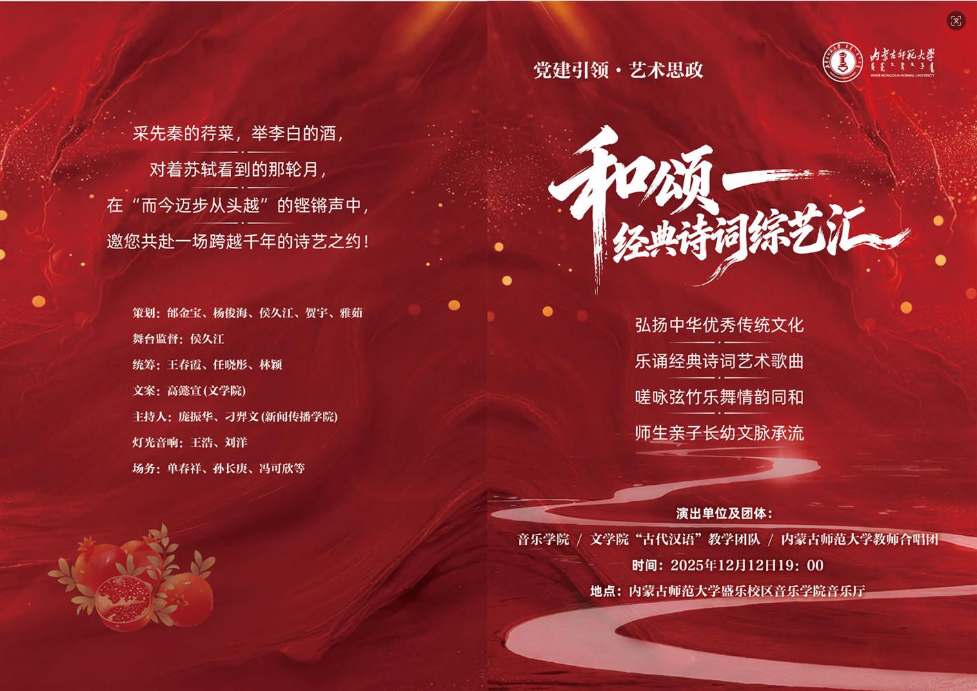 诗以载道,艺以化人。此次师生同台演出,是我院推动文学专业教育与思政教育深度融合的生动体现,也是一次引导师生亲近经典、传承文化的具体实践。未来,我院将继续以鲜活的艺术语言诠释经典,在实践与教学中传递中华文脉的深厚底蕴,为中华优秀传统文化在当代的创造性转化与创新性发展贡献积极力量。