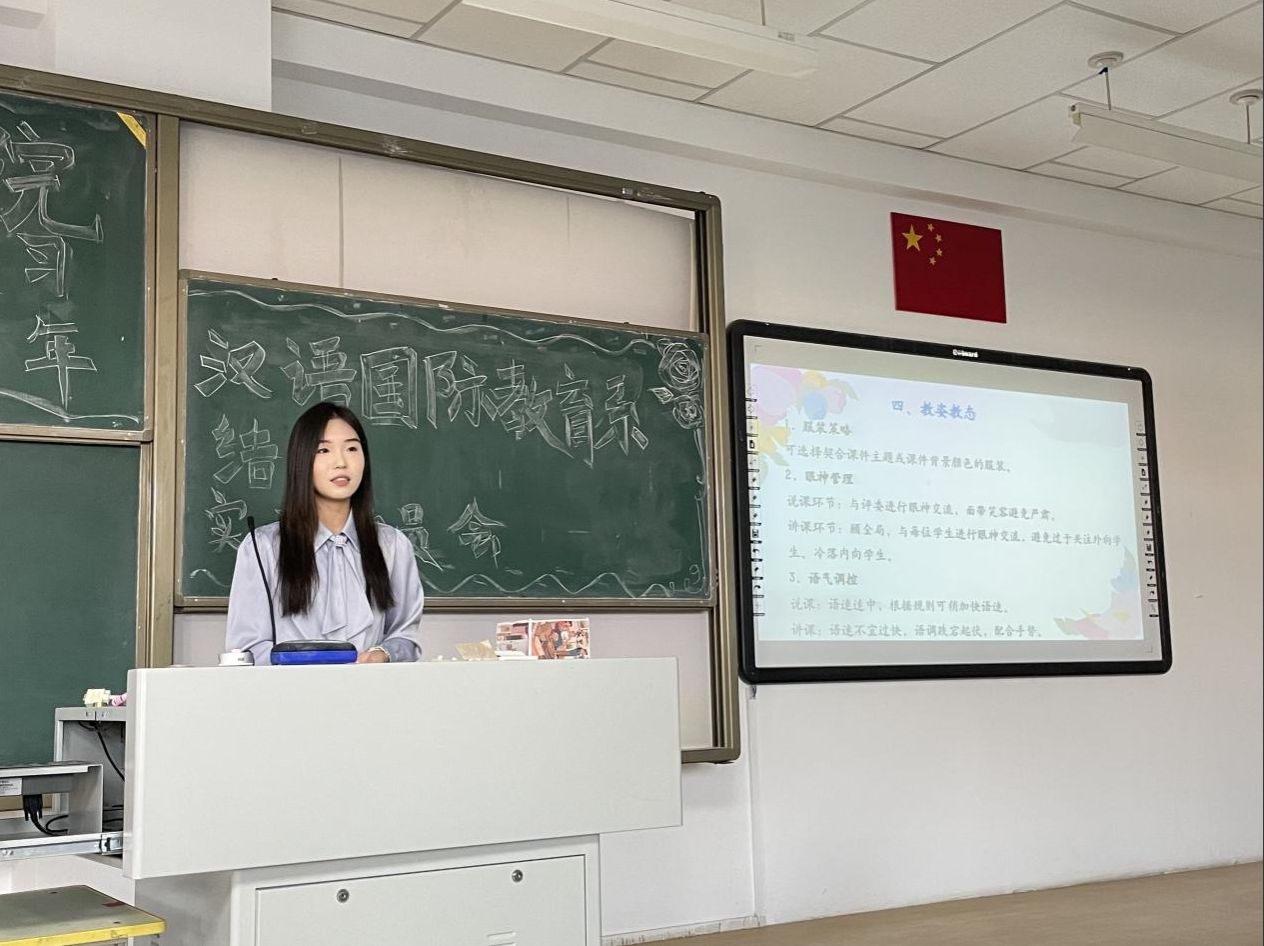 同为2023级汉语国际教育班的王馨,也结合自身在全国及校级教学技能大赛中的获奖经历,从备赛策略、现场展示等方面分享了心得与思考。