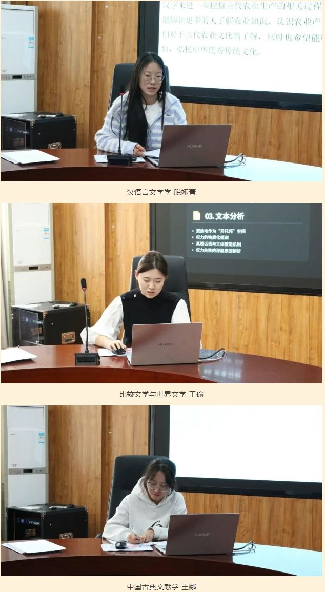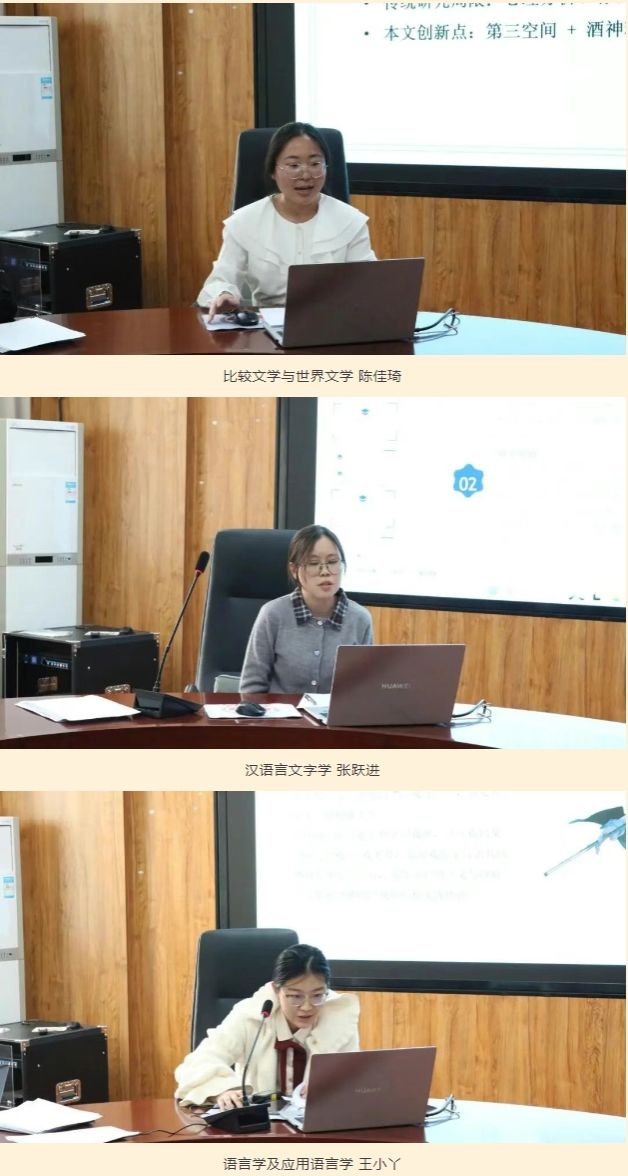 论坛现场,15位研究生依次进行论文汇报,围绕各自研究领域,从选题缘起、文献梳理、核心观点、创新之处及研究局限等方面展开详细阐述,充分展现了扎实的专业积累与严谨的学术态度。汇报结束后,与会师生就论文的研究方法、论证逻辑、理论应用等问题展开深入互动交流,现场学术氛围浓厚热烈。