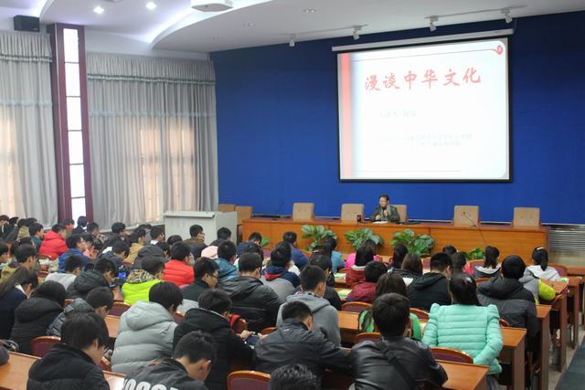 2014年11月17日、18日,由太阳集团学工部、学生工作与就业指导处主办“成长成才大讲堂”—“漫谈中华文化”讲座分别在我校盛乐校区科技楼报告厅和赛罕校区信息楼报告厅举办。我院万奇教授主讲。
