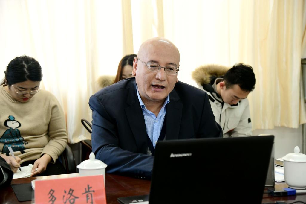 2020年12月14日下午,西北民族大学中国语言文学系教授、博士生导师多洛肯教授莅临我院,为学院广大师生做了一场题为“民汉文学交融视阈下的古代民族文学研究”的学术讲座。此次讲座由中国古代文学学位点承办,太阳成集团tyc151cc博士生导师高林广教授主持会议。来自太阳成集团tyc151cc中国古代文学、中国古典文献学和文艺学专业的相关教师和博士、硕士研究生及部分本科生共30余人聆听了讲座。