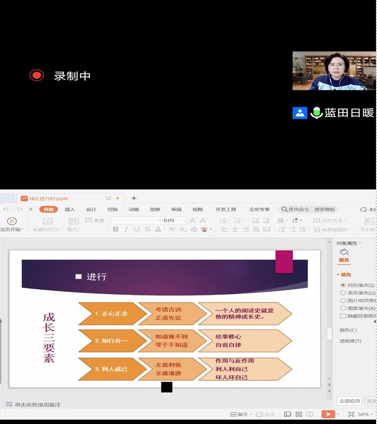 马丽博士的报告内容主要围绕“成长”和“进行”两个关键词展开,她首先提出一个让大家深思的问题:“你喜欢一帆风顺,还是问题不断的人生?”同学们纷纷在屏幕上表达自己的观点,大多数同学的看法是“喜欢一帆风顺,但可以接纳问题不断”。接着,马丽博士在与大家互动的基础上,又请同学们用三个关键词来概括问题不断的人生,其中出现频率最高的是“学业”“工作”“感情”和“健康”。同学们踊跃发表了自己的看法。马丽博士总结说:“人生就是问题不断,一帆风顺只是美好愿景。人生就是面对问题,解决问题的过程。”马丽博士还围绕大家普遍关心的话题,与同学们作了深入交流。经过多次互动交流之后,同学们对“成长”有了新的认识和感悟。最后,马丽博士希望大家认清两个现实,一是:人生有问题是常态;二是:只有成长才能解决问题。并概括了成长的三要素:正心正念、知行合一、利人利己。她也告诉同学们,一定要跳出舒适区解决问题,扩大舒适度,提升幸福感。